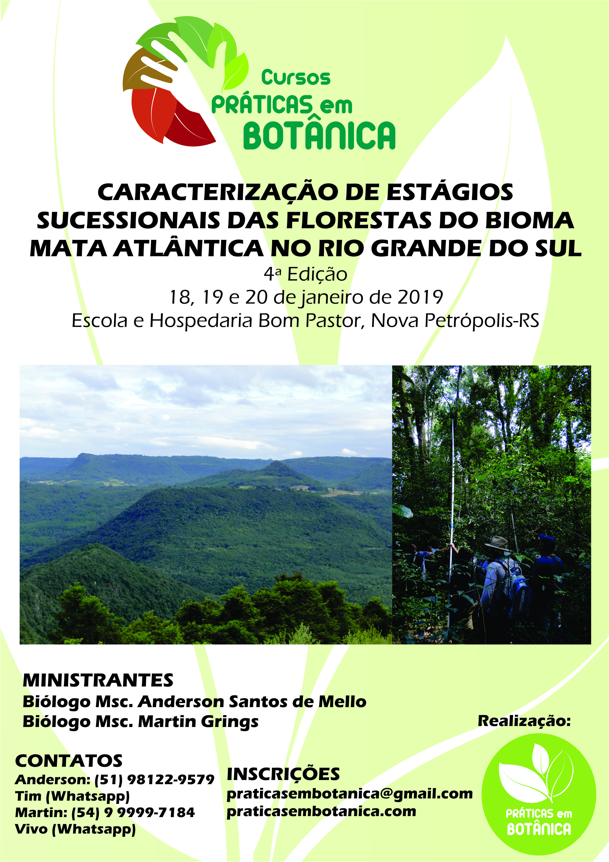 A 4ª Edição do Curso Caracterização de Estágios Sucessionais das Florestas do Bioma Mata Atlântica do Rio Grande do Sul será realizada no município de Nova Petrópolis-RS, na Serra Gaúcha!