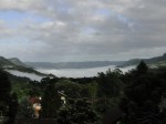 Neblina no amanhecer no vale do arroio Pirajá e do rio Caí, vista da sacada da Hospedaria Bom Pastor